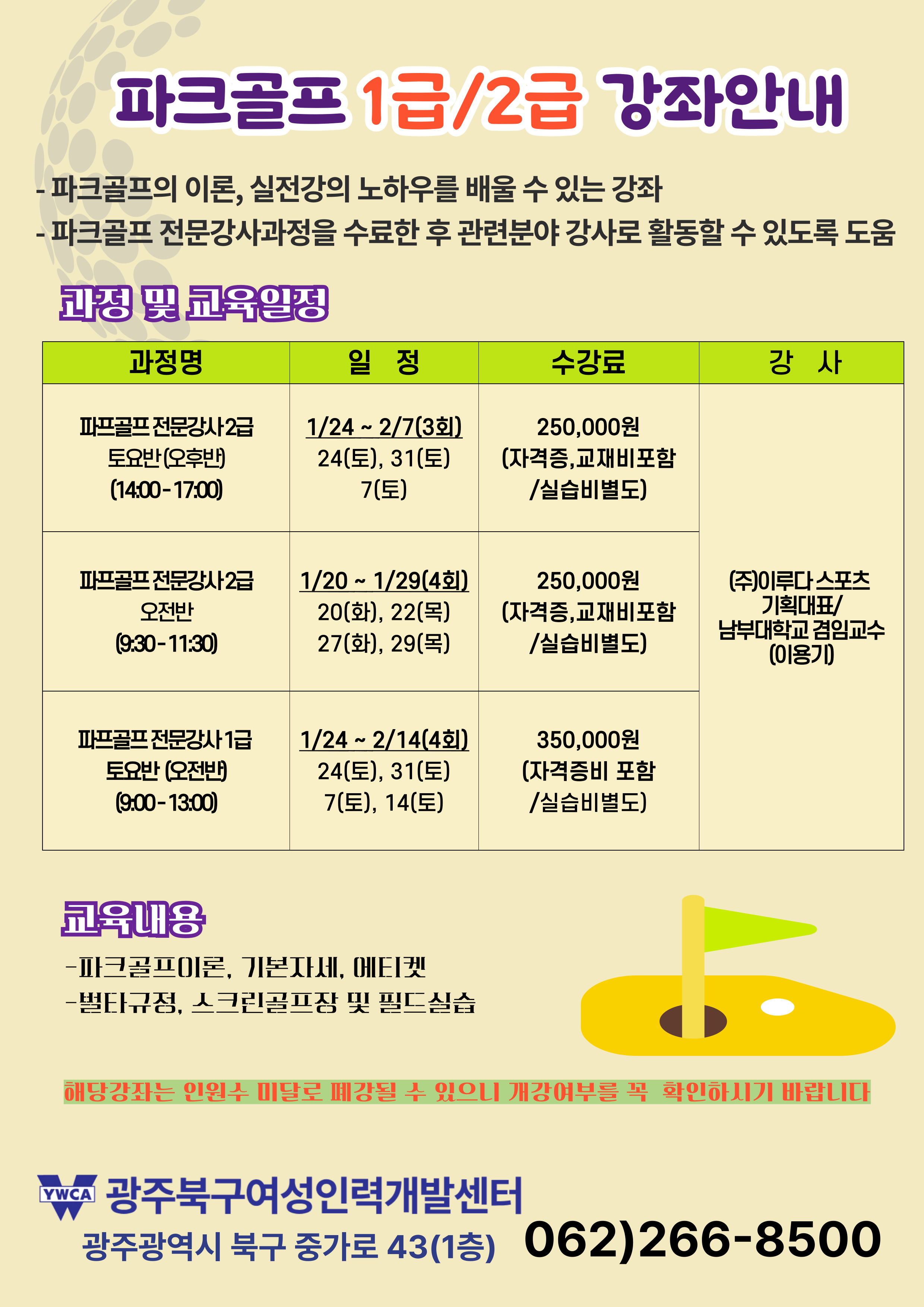 #광주북구여성인력개발센터 #파크골프 #파크골프전문강사 #자격증 #토요반 #여성일자리 #인생2막 #새로운도전 #강사모집.